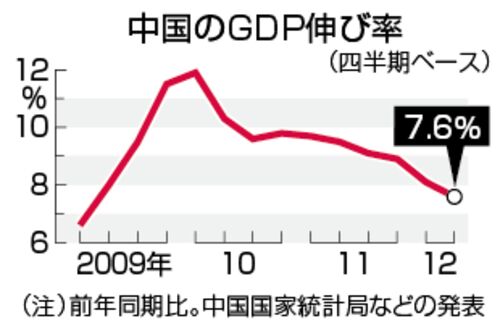 ユーロ債務危機問題で揺れる欧州はもちろんのこと、米国も雇用統計をみると、景気回復が遠のいている、頼みの中国であるが、こちらも景気が減速している。といっても、実質成長率で7.6%増なので、欧米や日本など先進国に比べれば十分成長しているとはいえる…