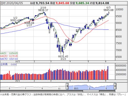 先週末、米国株は大幅高。NASDAQ総合指数は一時、2/19に付けた過去最高値を上回りました。NASDAQ市場はコロナによる下落33%分を取り返しました。 www.nikkei.com NADAQ総合指数(出所:Kabutan) 米国は日本と違って、まだ感染者数が、収まりきっていません…
